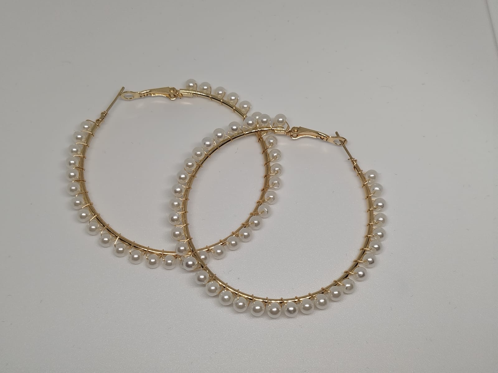 עגילי חישוק מעוטרים בפנינים קטנות